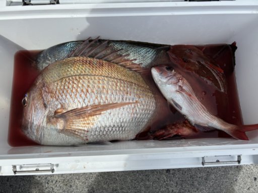 今日の収穫は特に70cmのマダイが釣れたのと、