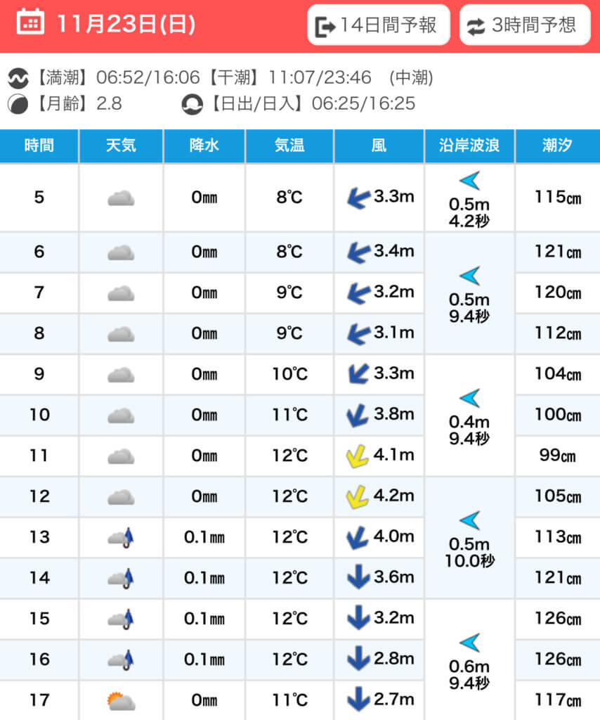 前日までの予報だと風速1~2mだったのに、